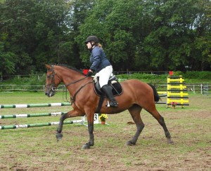 Damule podjely nohy a téměř neodskočila. Skok jsme ale ,,překonaly´´ takže jsem honem sbírala otěže a pokračovala dál. Na druhém skoku se již kobyla trošku zkoncentrovala a zbytek parkuru přešla bez chyby. Smolná chyb na prvním skoku a mírně křečovitý zbytek - těch 10min. na opracovišti nám prostě chybělo.....